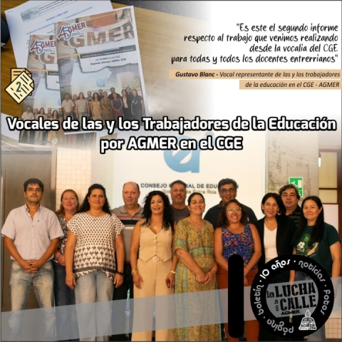 Las y los vocales de los Trabajadores de la Educación por AGMER en el CGE elaboraron y comparten el segundo informe de trabajo en el Consejo General de Educación. Repaso de lo actuado hasta abril del corriente e ítems a tener en cuenta, difundimos este material también como boletín para que sea nexo con las y los docentes y quienes trabajan en su representación día a día.
