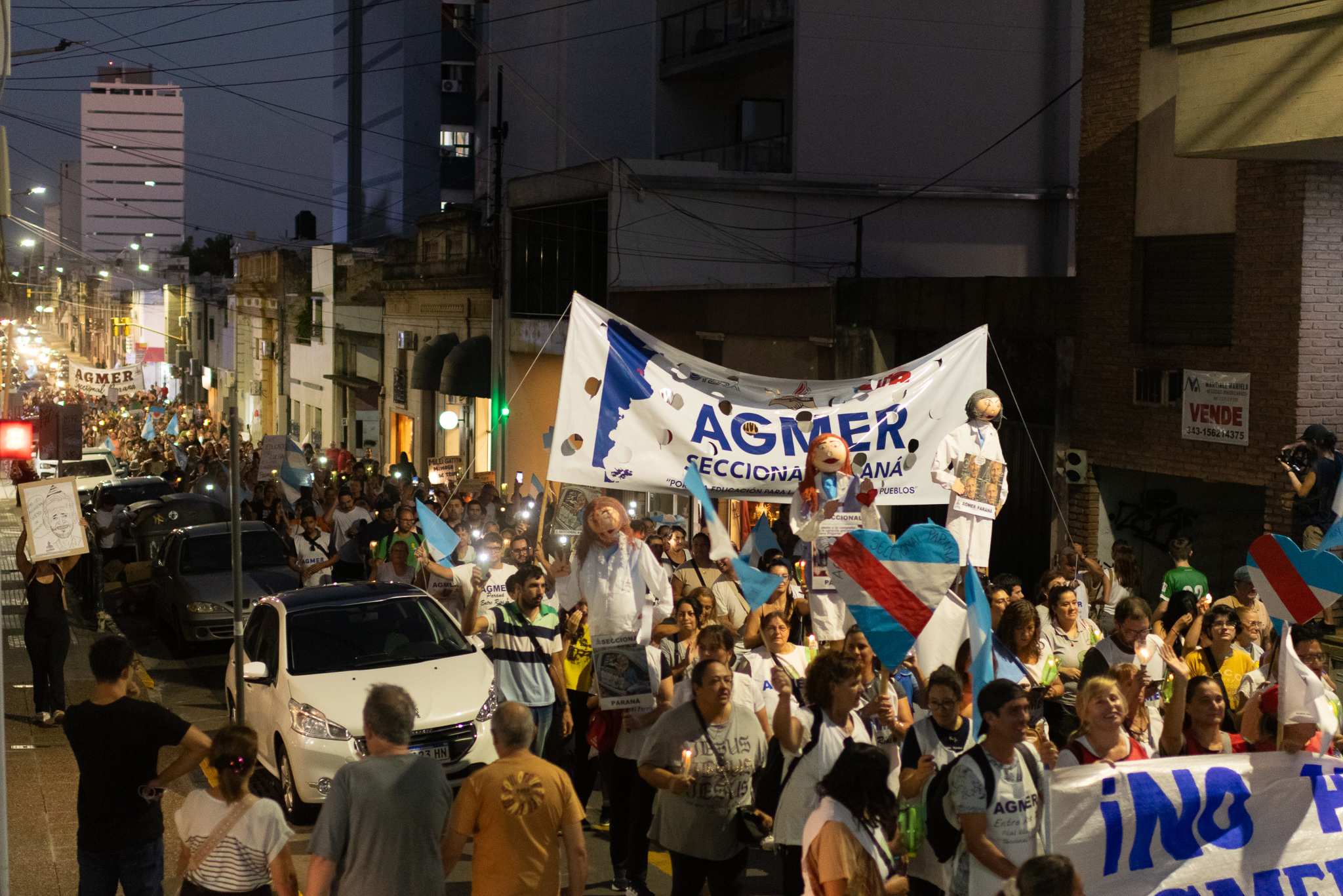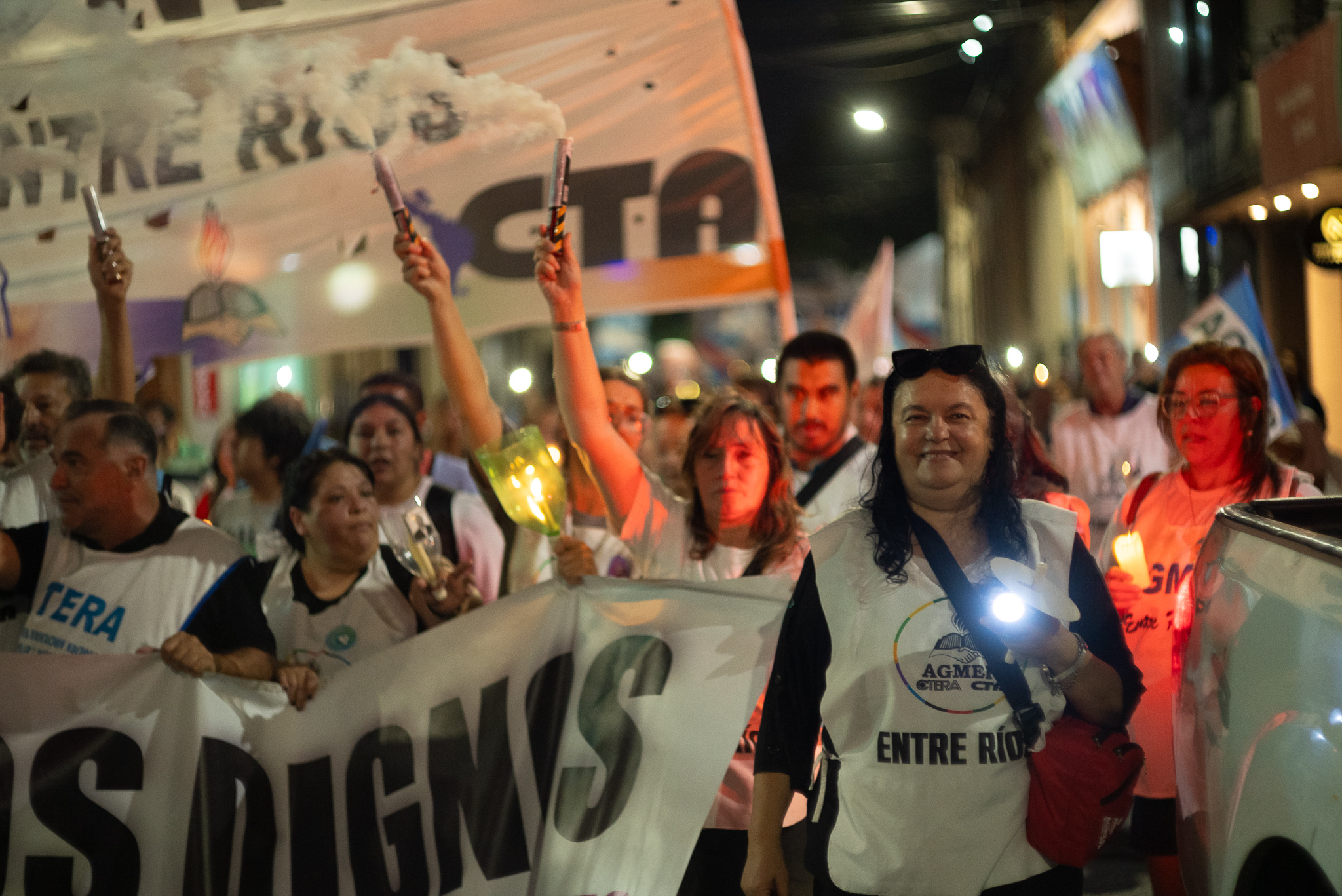 Porque la escuela pública no se vende, seguimos enseñando a luchar. Colmamos las calles, esta vez dándole luz a la noche entrerriana con velas, antorchas y linternas. Porque si algo sabe la docencia es demostrar cualquier día, a cualquier hora, que va a pelear por lo justo y lo necesario. Por nuestras y nuestros gurises, por la Escuela y la Educación Pública. Iluminando los caminos que hagan falta. SIEMPRE.