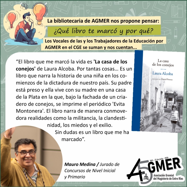 La Biblioteca de AGMER conmemora esta fecha, promovida por la UNESCO, como una oportunidad para reafirmar el valor de la lectura, la circulación del conocimiento y la defensa de los derechos culturales. Nuestra bibliotecaria, además de propuestas, sugerencias y disparadores para trabajar en el aula, nos deja una consigna… ¿Qué libro te marcó la vida y por qué? ¿Nos cuentan?... Les contamos…