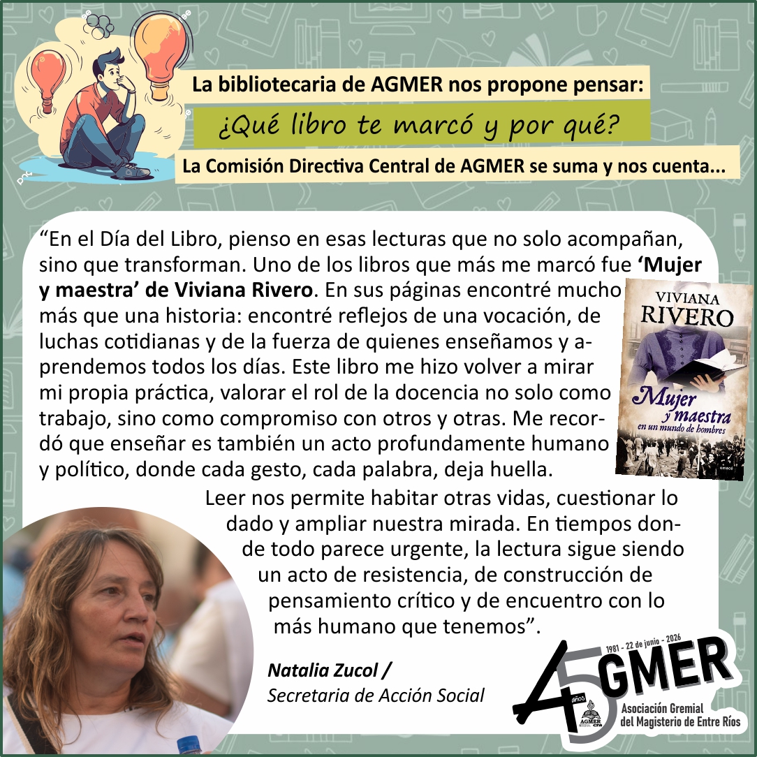 #DíaDelLibro #DerechosDeAutor #Lectura #EducacionPublica #Agmer #Biblioteca #DerechosCulturales #LeerEsUnDerecho #MemoriaPedagogica #Cultura